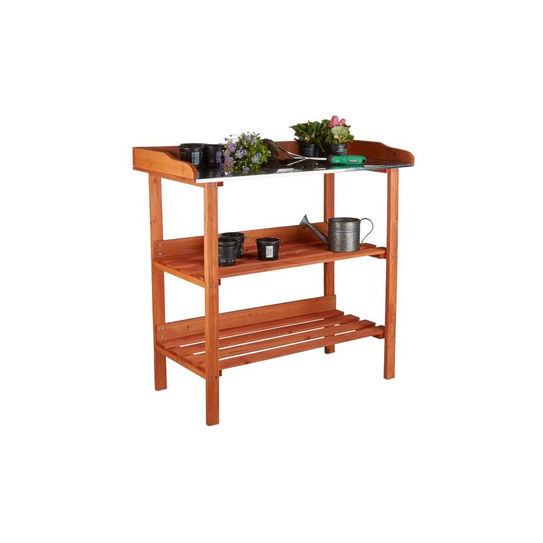 CIADAZ planteringsbord med hyllor furu 82,5 x 50 x 109,5 cm, växthus grönsaksträdgård, trädgårdsarbetsbänk, arbetsbänk för blomkrukor, trädgårdsbord - 832407