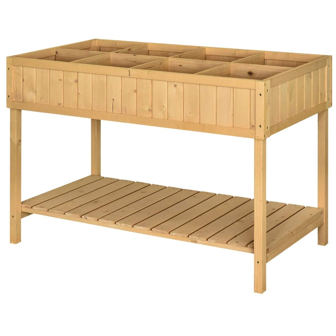 Upphöjd bädd 8 fack planteringsbord blomsterlåda granved 1 hylla + avlopp