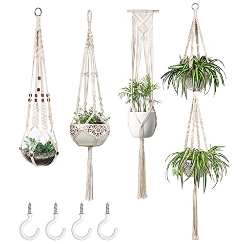 Mkouo Makramé växthängare uppsättning av 4 hängande planteringskorg dekorativ blomkrukhållare för inomhus utomhus heminredning presentförpackning