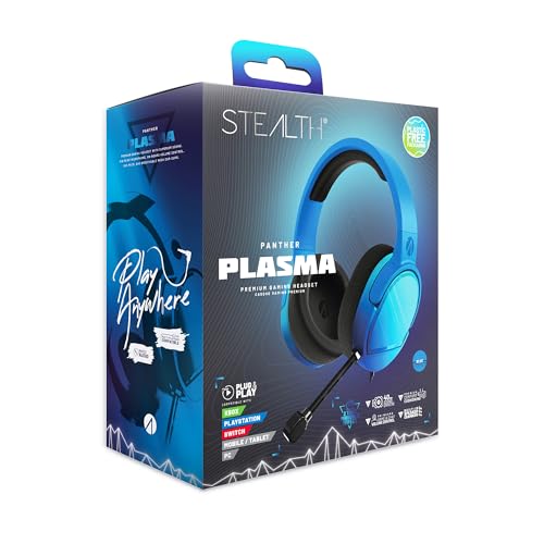 STEALTH PANTHER Plasma blå – Over Ear spelheadset kompatibelt med PS4/PS5, XBOX, Switch, PC med flexibel mikrofon, 3,5 mm uttag, 1,5 m kabel, lätt, bekväm och hållbar