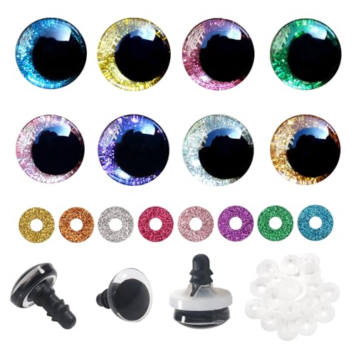 TOAOB 60 stycken 20 mm säkerhetsögon, dockögon, djurögon, plast, pyssel, ögon, glitter, färgglada ögon med brickor för virkade djur, marionett, docktillverkning
