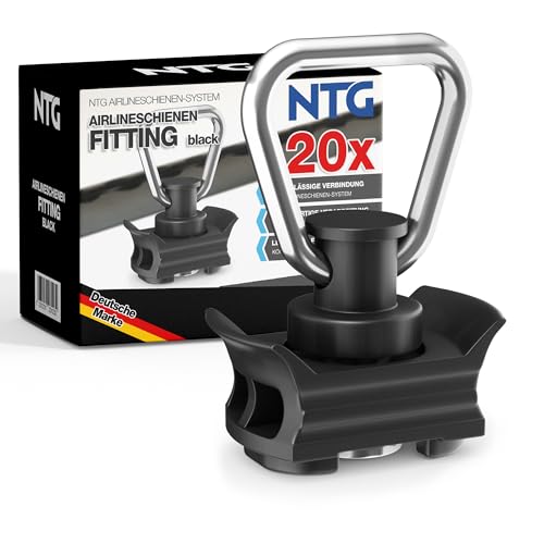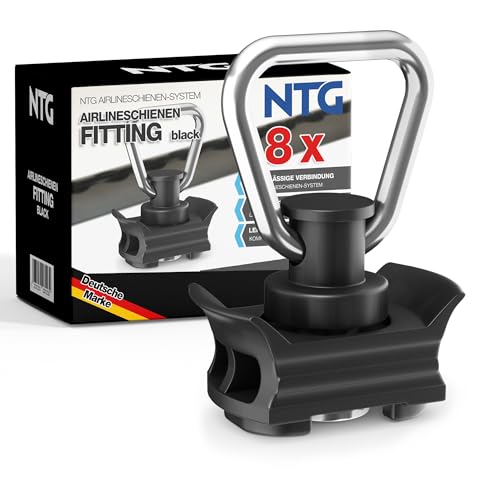 NTG Airline-skensockel av plast (8-pack) | Airline Fitting med 1 000 kg brytlast i svart, enkel ändfastsättning för brickor, svängöglor för lastskydd i släpvagnar och