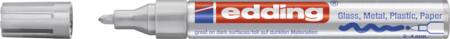 edding 751 glansmarkör – silver – förpackning med 1 färgmarkör – rund spets 1-2 mm – färgpenna för glas, småsten, trä, plast, papper – vattentät, hög täckning