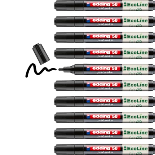 edding 50 EcoLine färgmarkör – svart – förpackning med 10 – rund spets 2–3 mm – vattenbaserat bläck, mycket ogenomskinlig och vattentät – penna för glas, sten, trä, plast och papper