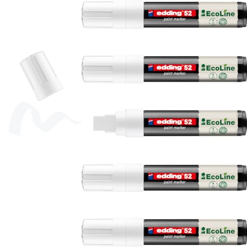 edding 52 EcoLine färgmarkör – vit – förpackning med 5 – mejselspets 4–15 mm – vattenbaserat bläck, mycket ogenomskinlig och vattentät – penna för glas, sten, trä, plast och papper