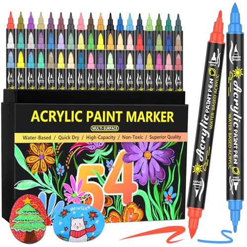 Lyuvie 54 färger akrylfärgpennor med dubbla spetsar set-permanenta akrylfärgmarkörer fin spets och penselspets för bergmålning tyg sten trä glas papper plast hantverk tillbehör