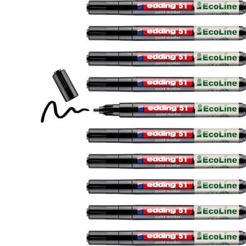 edding 51 EcoLine färgmarkör – svart – förpackning med 10 – rund spets 1–2 mm – vattenbaserat bläck, mycket ogenomskinlig och vattentät – penna för glas, sten, trä, plast och papper