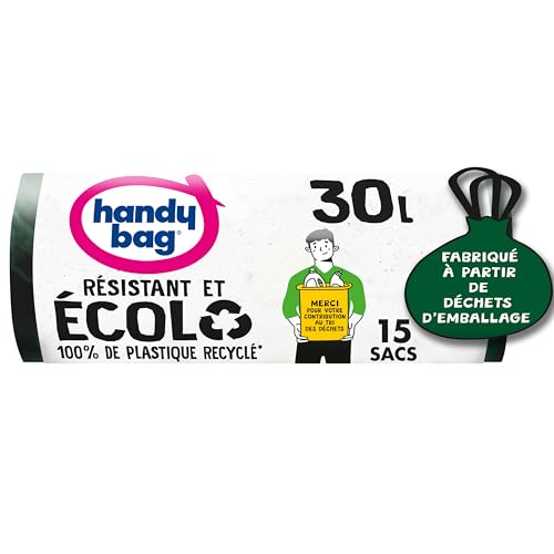 Handy Bag - Hållbara papperskorgar 30 l x 15 påsar - Prestanda: slitstark plastfilm - maximal tätning - 100% återvunnen plast
