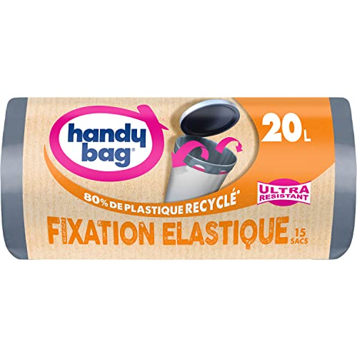 Handy Bag - Säckpåsar med elastisk fastsättning, 20 l x 15 påsar - håller väskan på plats - ultrastark - treskiktad film - maximal tätning - 100% återvunnen plast