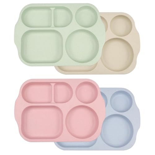 wocpvm 4 stycken barntallrikar plast, tallrikar uppdelad plast okrossbar barntallrik uppdelad tallrik med 5 fack för barn och vuxna