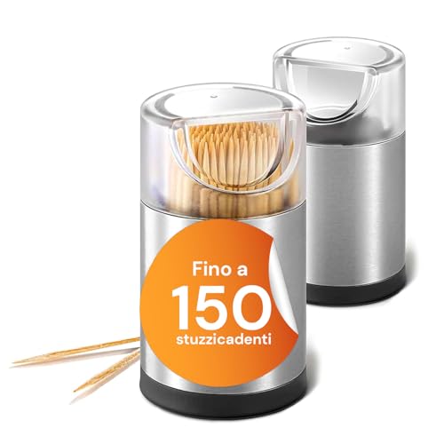 Avilia Transparent stål och plast tandpetare dispenser 4,5 x 8 cm - enkel och hygienisk fördelning - enkel påfyllning och lätt att rengöra - Upp till 150 tandpetare