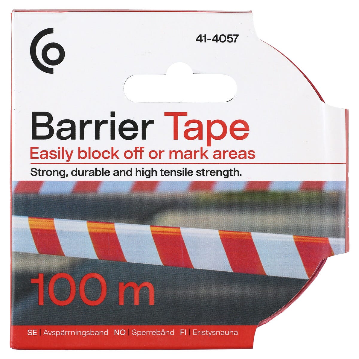 Clas Ohlson Avspärrningsband, röd/vitt plastband, 50 mm x 100 m