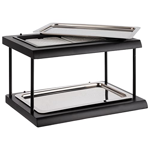 APS 11547 Buffémonter dubbeldäckare av bokträ i svart med plastbricka, 60 x 41 cm, H: 5 cm, inkl. GN 1/1 bricka av 18/10 rostfritt stål och 2 kylbatterier
