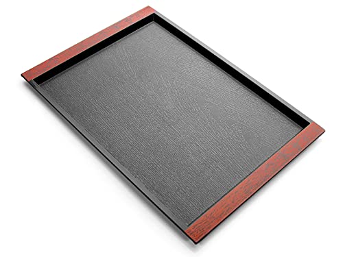 Serveringsbricka för att äta, stor plastbricka för matservering, svarta brickor, rektangulär, halkfri topp och botten med enkla grepphandtag för middag, drycker, te, fest (43 x 30 cm)