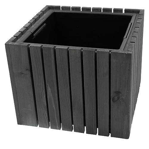 HRB blomkruka vintage fyrkantig av äkta trä antracit, högkvalitativ trä blomkruka med plastbricka med 15,5 l volym för inomhus- och utomhusbruk, planteringskrukorna har en unik design
