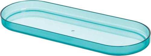 iDesign 29074 Sminkorganisatör, platt plastbricka för kosmetika, smycken, nycklar eller kontorsmaterial, ovalt toalettbordsarrangör också för hall, kontor och badrum, blå, 22,5 cm x 8,1 cm x 1,6 cm