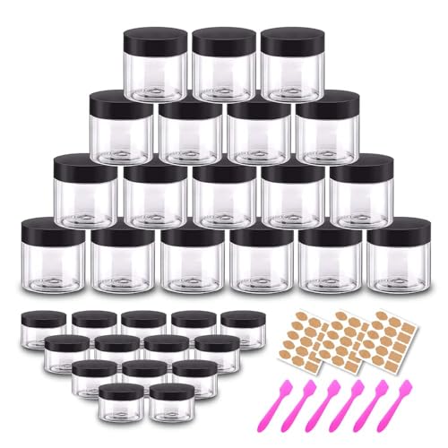 AiQInu 20 st. 30 ml resebehållare, transparenta resekrämbehållare, kosmetiska plastburkar med 6 skrapa 48 klistermärken, tomma kosmetiska behållare