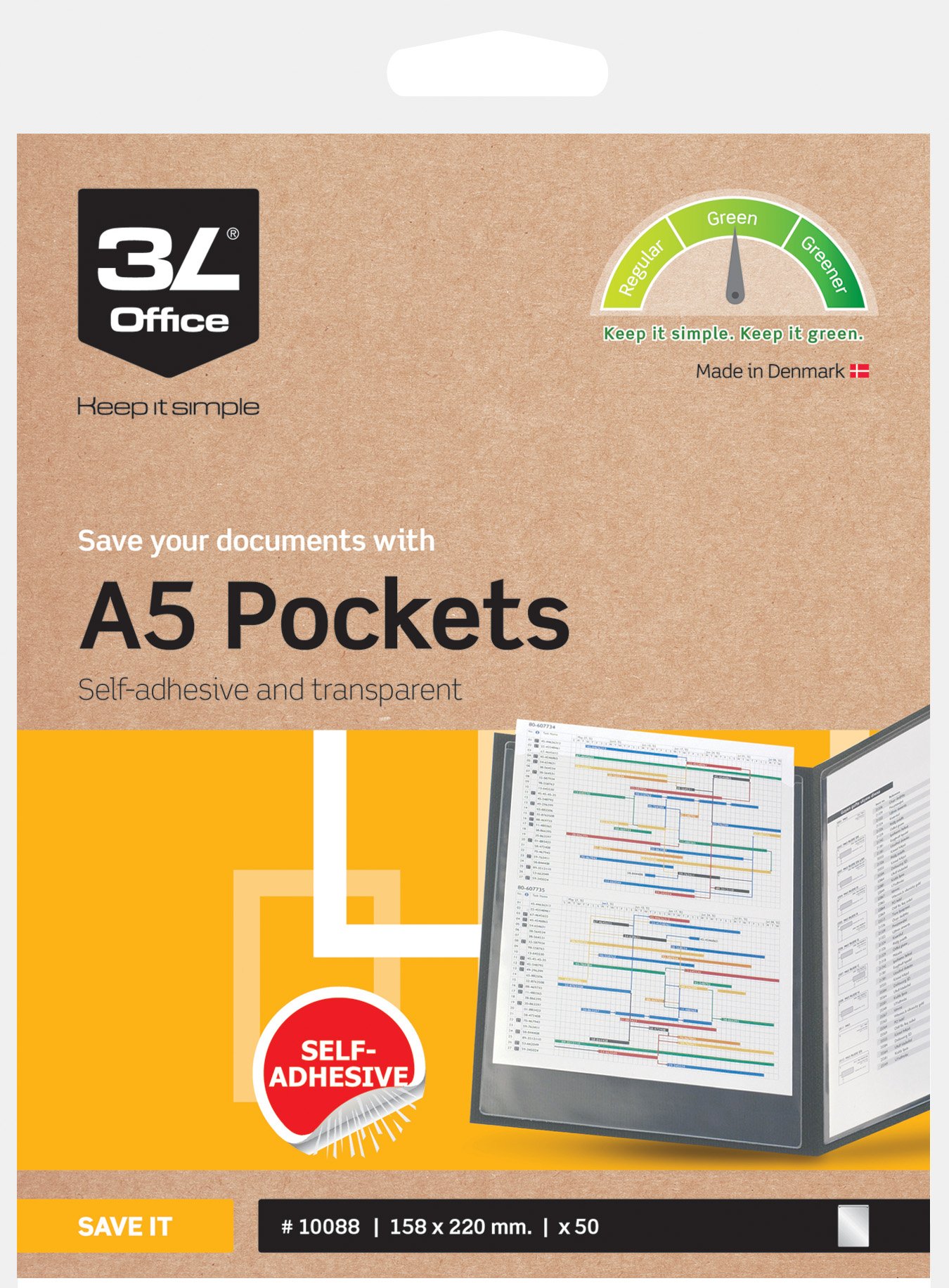 Plastficka 3L A5 Självhäftande, transparent, 50 st