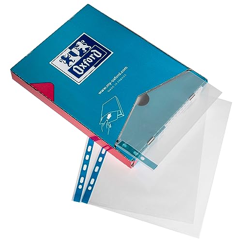 Oxford, premiumstansade fickor, blå remsa, A4, 100 plastfickor