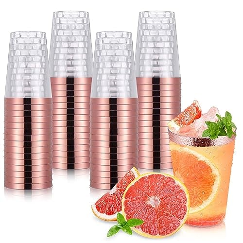 Hejo 60 st roséguldkantade plastglas, återanvändbar plastkopp, 360 ml-12 oz, återanvändbara plastvinglas för cocktails, champagne, öl, martini