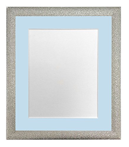 Ramar av POST Glitz champagne silver fotoram med blå montering 24 x 20 bildstorlek 20 x 40 cm plastglas