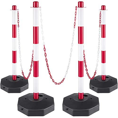 VEVOR Set med 4 stoppstolpar och 1 plastkedja med 10 m röd och vit, spärrstolpe, poller tillverkad av PE-plast för trafikkontroll eller varning vid infart, garage, grind etc. Röd