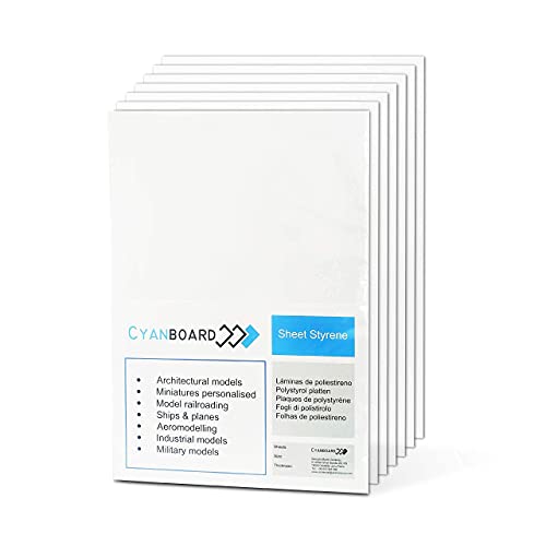Cyanboard, Styva polystyrenplattor PS – storlek A5 (210 mm x 148 mm) plastkort för modellbygge och modeller (1 mm x 6 stycken)