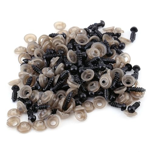Amigurumi säkerhetsögon, 100 st säkerhetsögon plastkrok, svarta plyschdjurögon med brickor, gör-det-själv-hantverk dockögon för docktillverkning (12 mm)