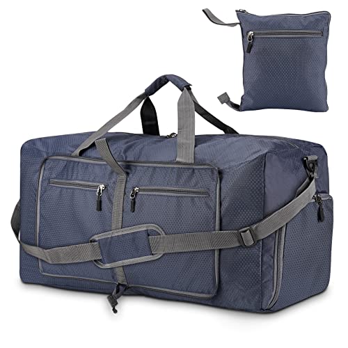 Vikbar resväska, CestMall 70 l, packbar sportsportväska med plastkrok och extra skoväska, vattentät helgsväska, övernattningsväska, lätt resväska, bagageväska för resor, BLÅ, Mode