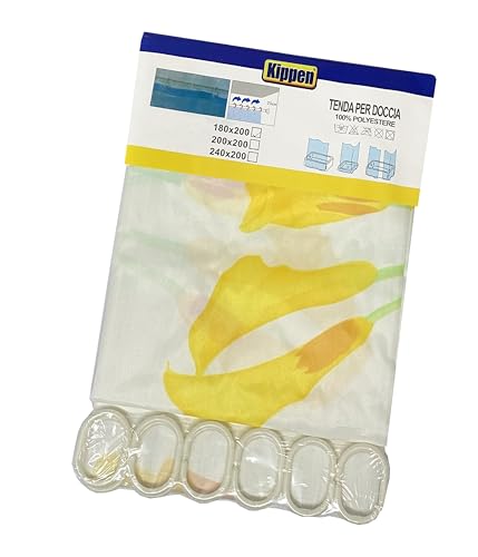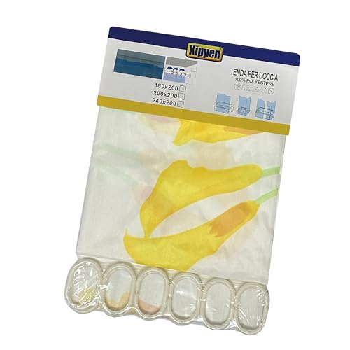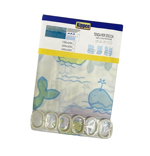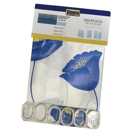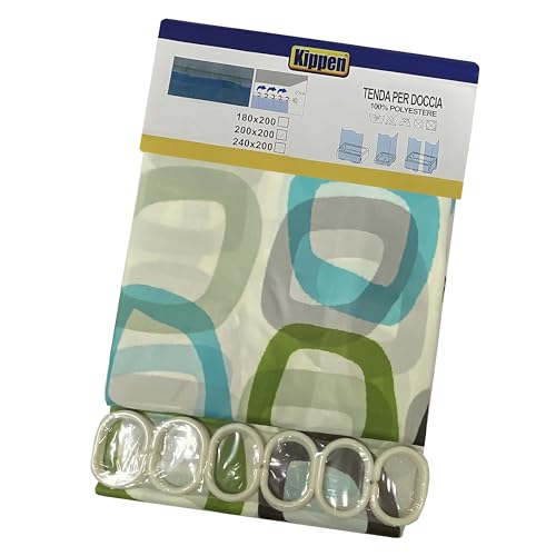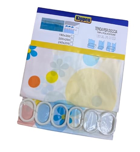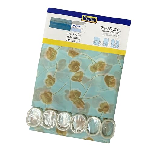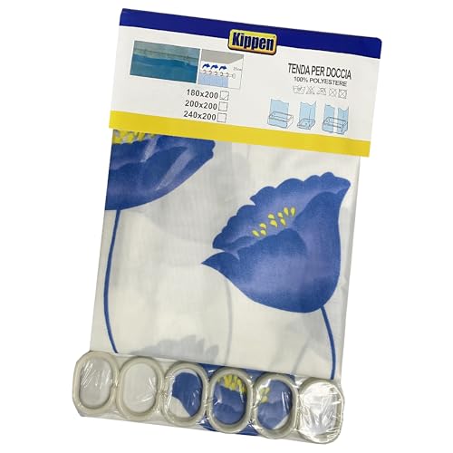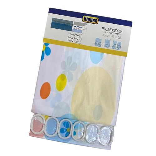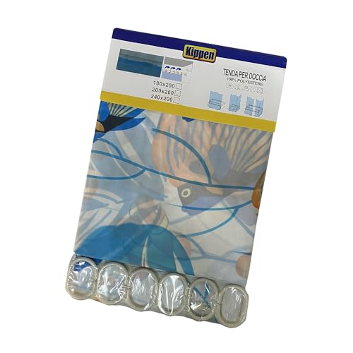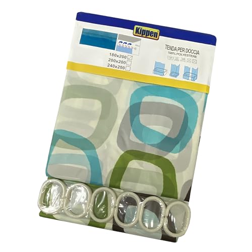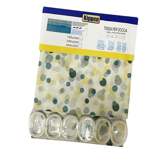 Kippen 1715A5 duschdraperi i polyester med 12 plastkrokar, storlek: 180 x 200 cm