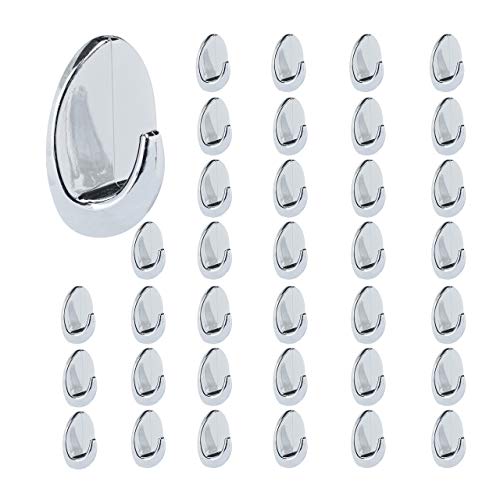 Relaxdays Självhäftande krok, uppsättning av 36 plastkrokar, självhäftande handdukskrokar utan borrning, badrum och kök, silver