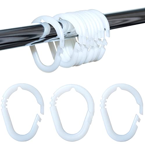 IPEA Dusch Gardinringar med öppen krok – 24 stycken – Made in Italy – Super Slitstark och glidbar plastkrokar för Badrum Tältstång – Färg Vit – Inre bredd 45 x 35 mm