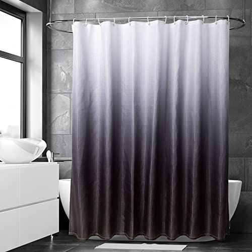 Dynamene Extra långt duschdraperi, 244 cm långt våffelväv kraftigt tjockt tyg badrum duschdraperi, neutralt viktat hotell bad draperi set med 12 plastkrokar, 182 x 96, vit