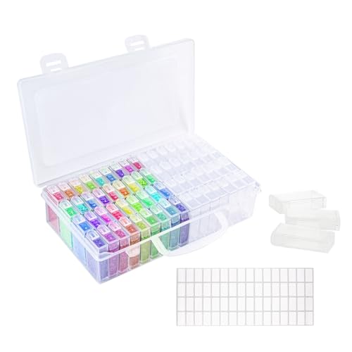 Flearitzo Diamond Painting förvaringslåda – 64 fack plastlåda 5D diamantmålning tillbehör, lådor, gör-det-själv pysseltillbehör för smycken och nagelkonst med klistermärken