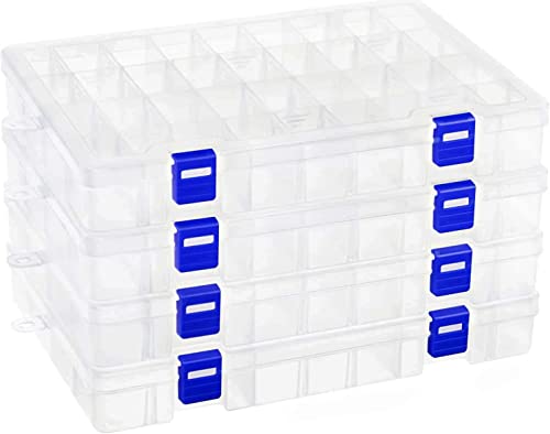 Qualsen Förvaringslåda i plast, smyckeskrin, förvaringslåda, justerbar för flera användningsområden, liten plastlåda (34 fack x 4, transparent)