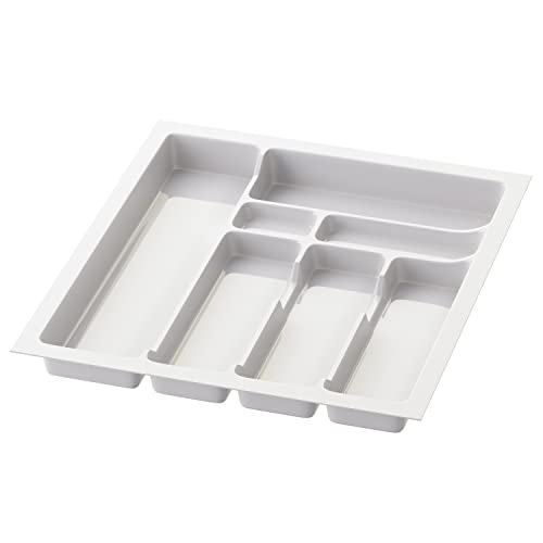 Sossai bestickinsats Divio för lådor som är 50 cm breda, 43x49 cm – kapningsbar, 7 fack, vit, plastlåda för bestick i lådor