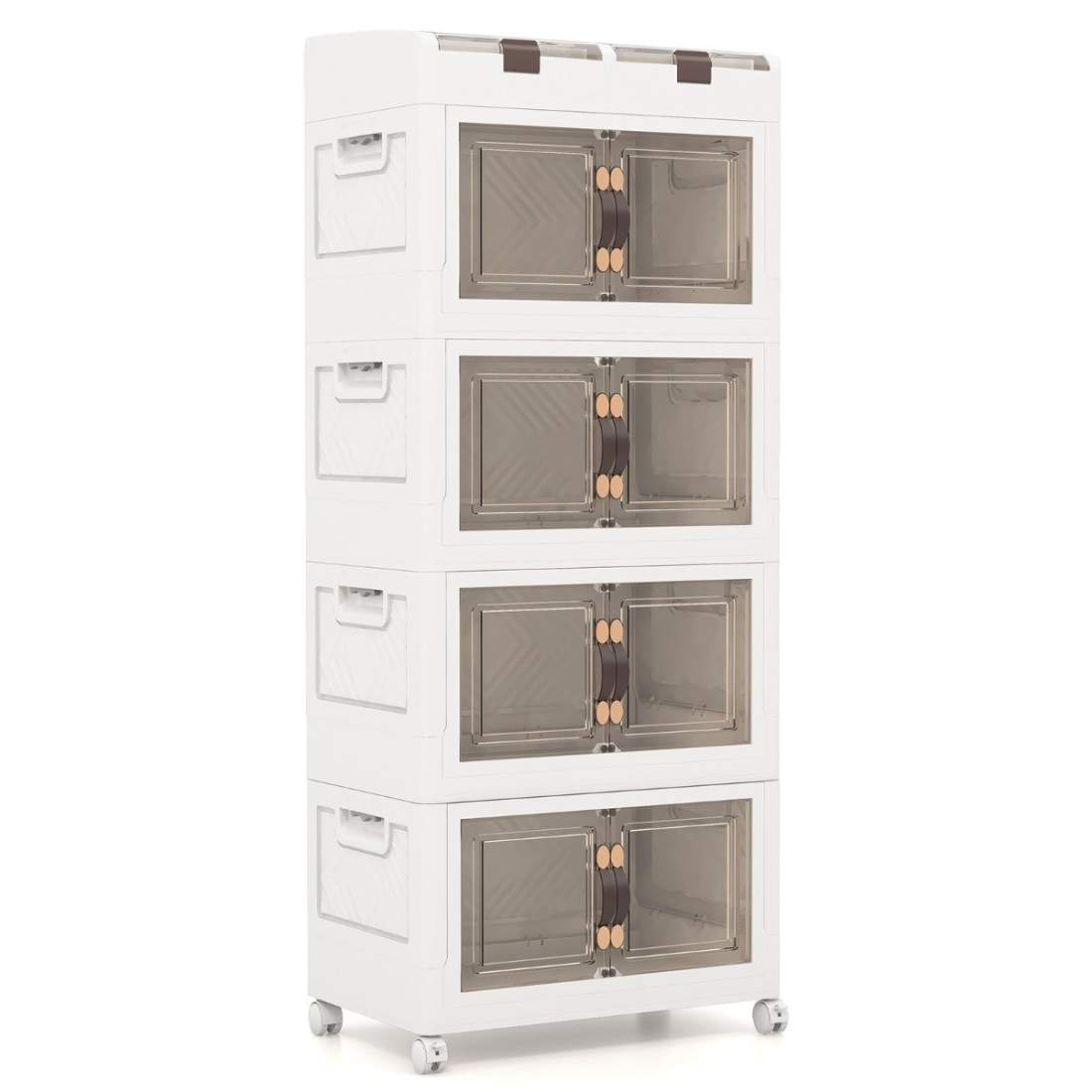 Paket med 4 staplingslådor med lock & hjul & dörrar Vikbar förvaringslåda Plastlåda 210L