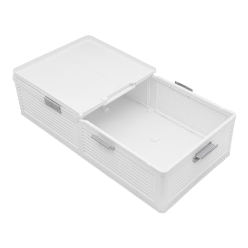 SuhoFutus Förvaringslåda för undersäng, förvaringslåda med hjul, plastlåda med dubbelsidigt lock, vikbar undersäng förvaringslåda/undersängbyrå vit, 101 x 51,5 x 24 cm