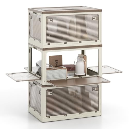 COSTWAY 3-pack förvaringslåda, vikbar, 98 l x 3 stapelbara lådor, förvaringsbehållare, plastlåda med lock, hjul och 5 dörrar, rulllådor för hem, kontor och camping (vit)
