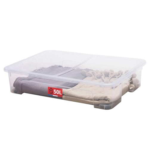Förvaringslåda - 50 liter - Praktisk förvaringslåda med tättslutande lock - Transparent plastlåda