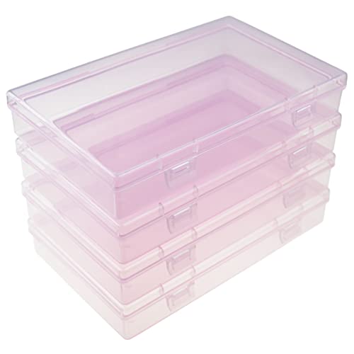 Goodma 4 delar rektangulära plastlådor tomma förvaringsbehållare med gångjärn lock för små föremål och andra hantverksprojekt (180 x 110 x 30 mm, rosa)