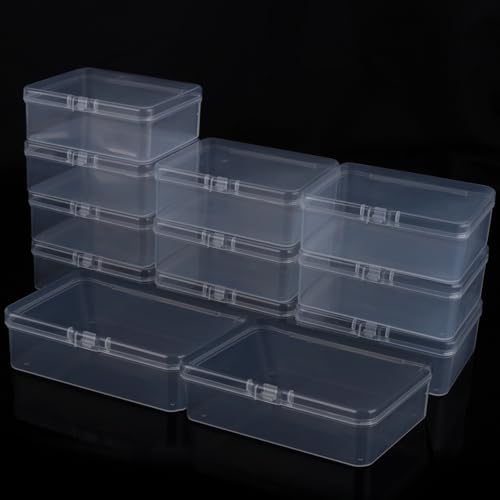 TRUEIN 12 st förvaringslådor med lock liten plast, liten förvaringslåda plast transparent plastlåda, mini plastlådor set för piller, pärlor, smycken, hantverk