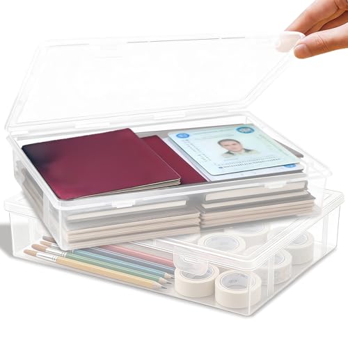Zamety Plastlåda med lock, 2 st. A4-plastlådor med lock transparent, mångsidig förvaringslåda, bärbar arkivlåda för papper skrivmaterial kosmetika verktygsdelar
