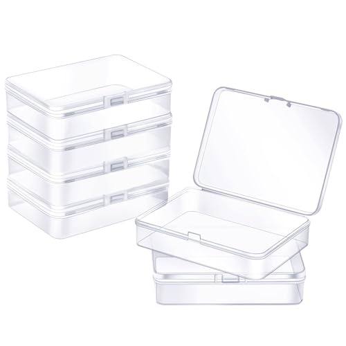 Mnixy 6 st genomskinliga plastförvaringsbehållare med gångjärn lock rektangel små plastlådor för pärlor, smycken, hårdvara, spelstycken, hantverksartiklar, 10 x 8,3 x 3,1 tum