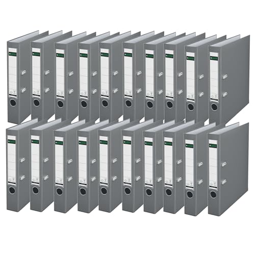Leitz kvalitetsmapp 180° plast, 20-pack, originalet, DIN A4-mapp 5,2 cm, smal, plastmapp med PP-laminerat omslag, med 180° mekanik, grå, 10155085
