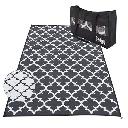 Gadgy Utomhusmatta 230x160 cm – Vändbar Plastmatta för Balkong, Terrass & Trädgård | Vattentät UV-beständig Utomhusmatta | Picknickmatta med Bärväska | Svart
