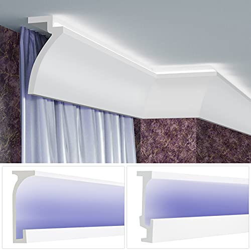 LED-gardinpanel av PU – indirekt belysning med stuckaturlister, lätt och ljusogenomsläpplig – (2 meter KF803) plastpanel, taklist