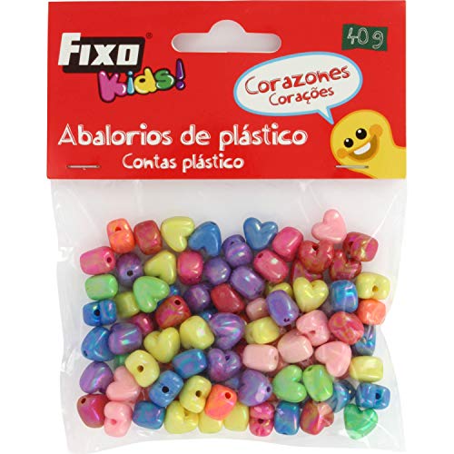 Fixo Kids 68004300. Plastpärlor väska, Hjärtan, 40 gram, Blandade färger, Perfekt för hantverk