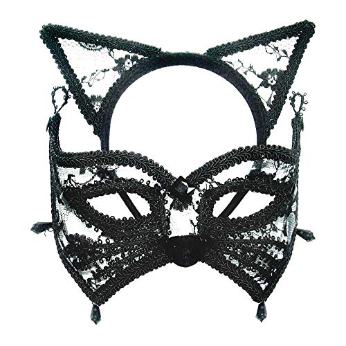 Bristol nyhet kattmask med öron på pannband, PET, polyester, plastpärlor, flerfärgad, en storlek