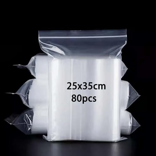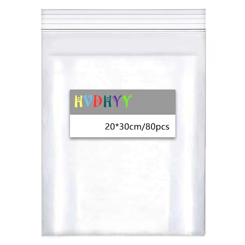 HVDHYY 200 mm x 300 mm grepptätningspåsar stora återförslutningsbara klar plast 160 µ 80 st plastpåsar förpackning för snacks för skor, klädförvaring
